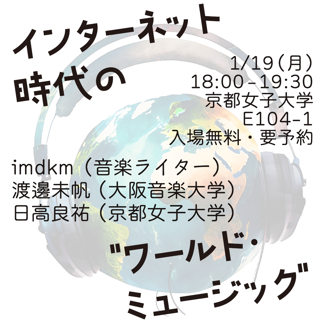 インターネット時代の”ワールド・ミュージック”:Uprootをめぐってデジタルテクノロジーの話を聞く 日時:2026年1月19日(月) 18:00~19:30場所:京都女子大学 E104-1入場無 … 続きを読む インターネット時代の”ワールド・ミュージック”:Uprootをめぐってデジタルテクノロジーの話を聞く